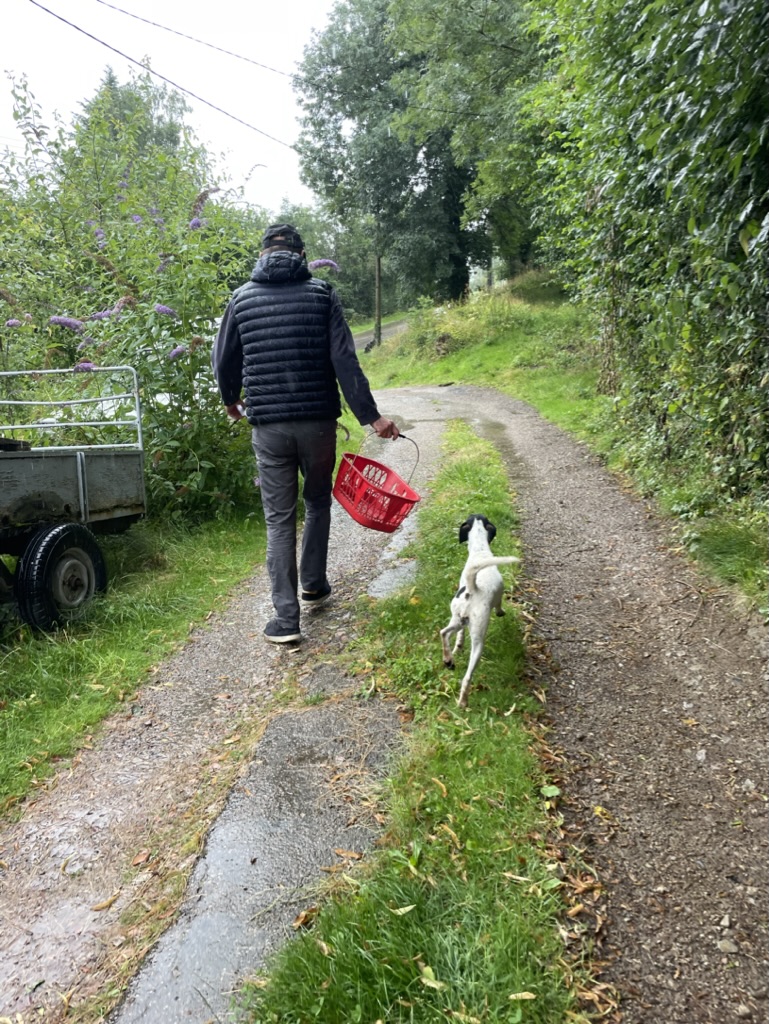 Er worden handen geschud, gezoend en de laatste nieuwtjes worden uitgewisseld. Ondertussen hangt het kleine witte keffertje van madame LeMaitre met zijn tanden in de kuit van LeCombe, die dat lachend ondergaat. Als hij even later terug is met de gewenste boodschappen voor madame, krijgt het witte keffertje botten toegeworpen om op te kauwen in plaats van zijn kuit. Een tedere petite scène van het Franse platteland, met LeCombe in de hoofdrol als dorpsomroeper, luisterend oor en rijdende kruidenier.
