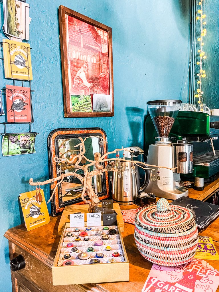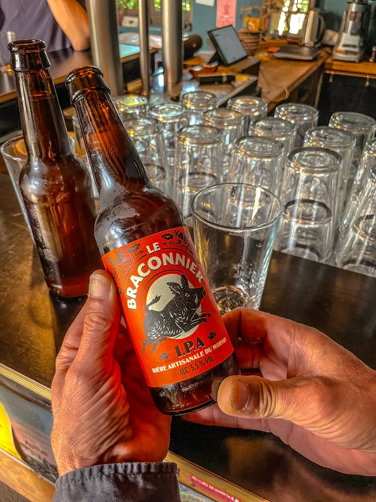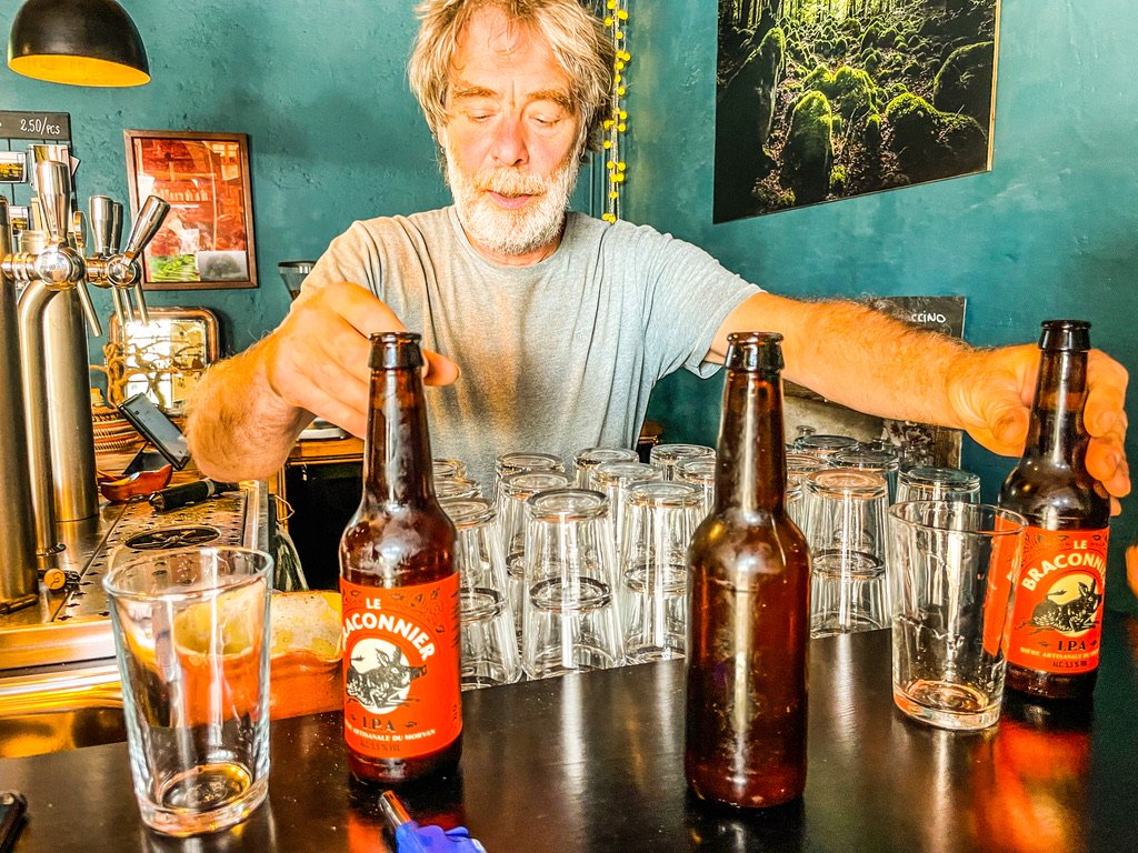 Frankrijk/Morvan /Saint Prix – Victor , vriend en oud collega heeft al jaren terug zijn plek gevonden in de Morvan – Victor is een duivelskunstenaar met hout – maar de liefde om uit een boom, kozijn/raam/ deur en trap te zagen bekoelde – en nu is de timmerman , bierbrouwer en kastelein geworden en de oude timmerwerkplaats Brasserie Le Braconnier geworden – een lekkere plek voor de dorstige mens in het centrum van het dorpje –