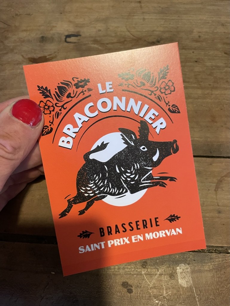 Frankrijk/Morvan /Saint Prix – Victor , vriend en oud collega heeft al jaren terug zijn plek gevonden in de Morvan – Victor is een duivelskunstenaar met hout – maar de liefde om uit een boom, kozijn/raam/ deur en trap te zagen bekoelde – en nu is de timmerman , bierbrouwer en kastelein geworden en de oude timmerwerkplaats Brasserie Le Braconnier geworden – een lekkere plek voor de dorstige mens in het centrum van het dorpje –