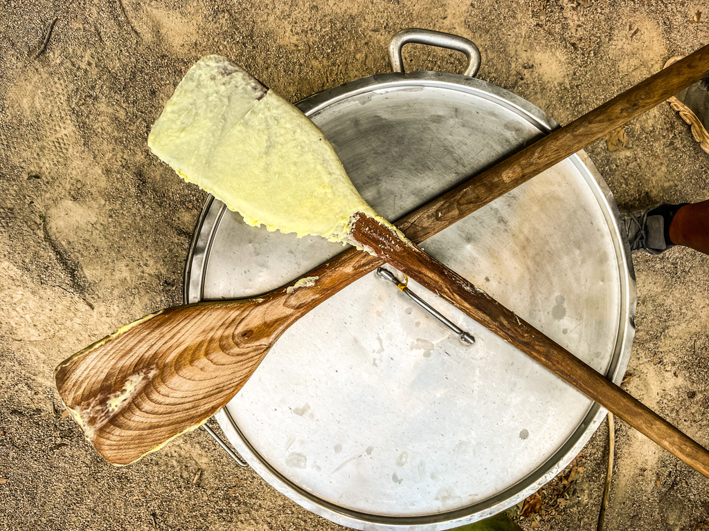 Marquisette is de drank; ik raakte er meteen verslingerd aan. De plaatselijke bigband gaat vrolijk los. Als de dag wordt afgelost door de nacht, zit iedereen gebroederlijk te ouwehoeren en te eten met een glas aan de lip: Liberté, Égalité, Fraternité. Aligot is een typisch gerecht uit de Aubrac en omgeving, gemaakt van aardappelpuree, boter, knoflook, room, peper en zout.