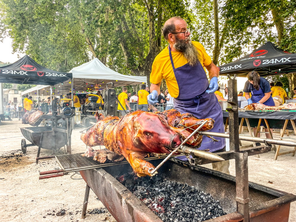 Dorpsfeest in Espalion met aligot en varken van het spit