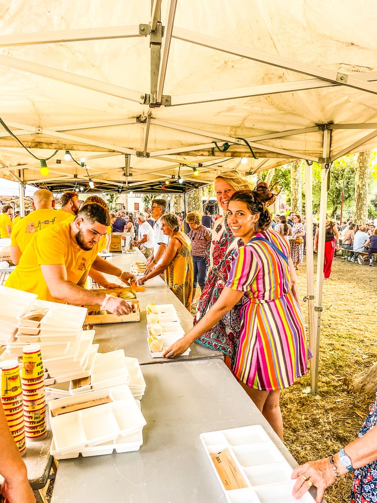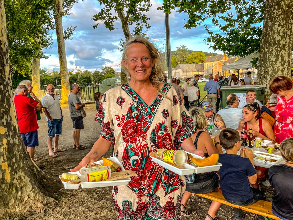 Dorpsfeest in Espalion met aligot  en varken van het spit