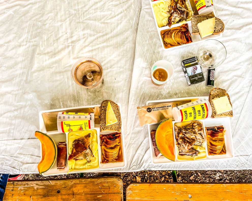 Marquisette is de drank , ik raakte er meteen verslingerd aan – de plaatselijke big band gaat vrolijk los – als de dag word afgelost door de nacht zit iedereen gebroederlijk te ouwehoeren , te eten en met een glas aan zijn lip – Liberte ,Egalite en Fraternite – Aligot is een typisch gerecht van Aubrac en omgeving – gemaakt van aardappel pure / boter/knoflook/room peper en zout –