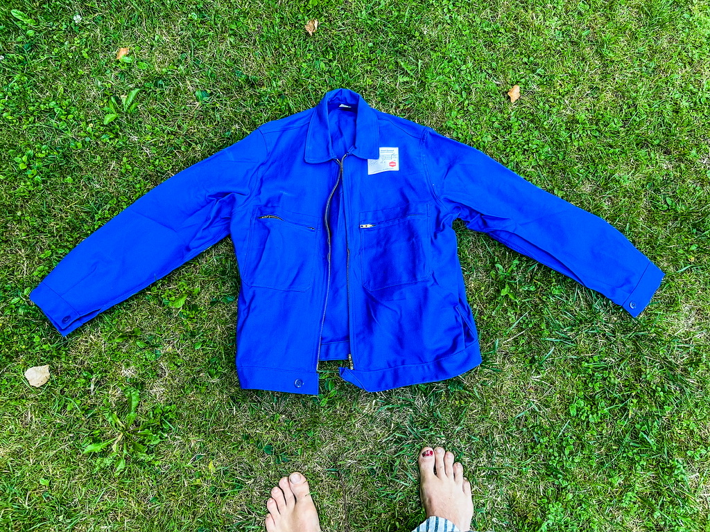 Frans spul – Fransman worden is de ambitie niet – tis ook niet te doen als je wieg tussen rietschoot en sloot stond – maar een diepe liefde voelen voor het land gaat met een soepel gemak – brocante keten Emmaüs zit door tout le France , hier kan je fijn Frans spul kopen – Franse werkkleding vind ik tof , de stof is blauwe moleskin , lekker dik en na een paar keer wassen heerlijk zachtĀ – en gehuld in blue proeft een pastis aan de toog toch beter –