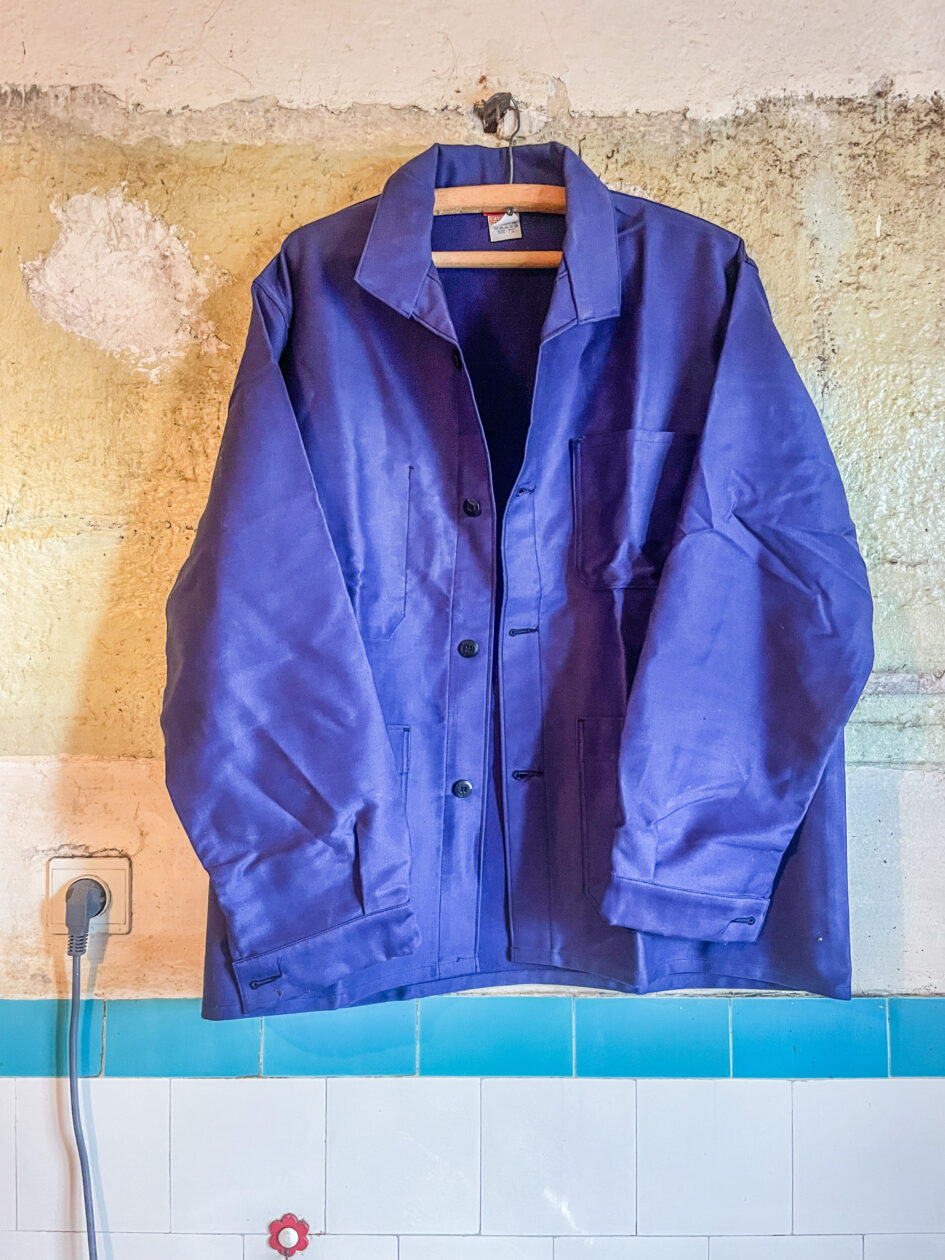 Voor Franse werkkleding hoef je niet perse meteen af te reizen naar Frankrijk ( hoewel dat wel veel leuker is ) op Vinted en Etsy staat genoeg te koop van uit je Nederlandse luie stoel .