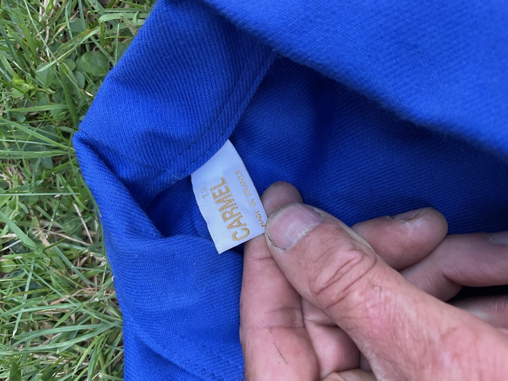 - Franse werkkleding , prachtig helder blauw van Moleskin stof