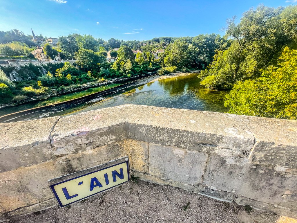 Deze toffeplek pal aan de L’Ain is naast de brug bij ??Neuville-sur-Ain?, ?Frankrijk? .
