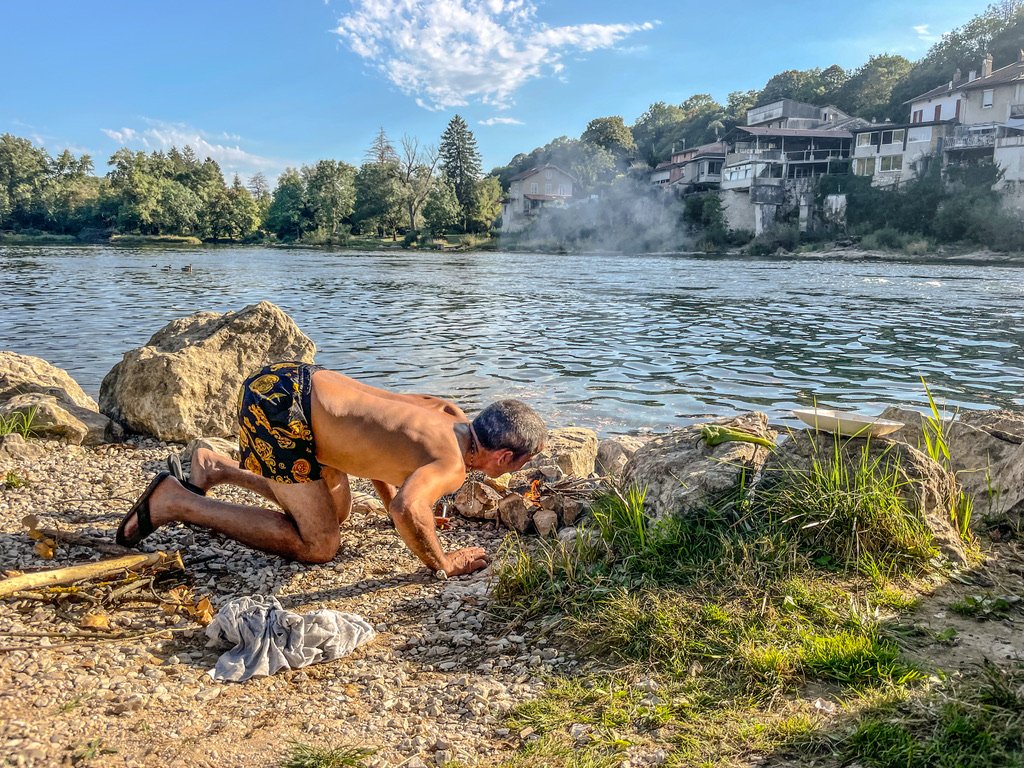 Geestige ontwikkeling a France zijn de “Interdite “ borden – de meeste dingen waar we lol in hebben , vrij kamperen / parkeren / zwemen in meren en rivieren zijn “inderdite” – het zijn grote borden /rood en dwingend – aanvankelijk raak je nog al geïntimideerd door toon en de schriftelijke belofte van jaren lang door te brengen op water en brood in de Bastille na overtreding – maar al snel heb je in de gaten dat de local’s de verbod’s borden zien als reuze lolly’s louter ter vermaak neer gezet voor boeren en buitenlui- mijn observatie is dat deze borden als een magneet werken op campers , zwemer,s en notoire fout parkeerders zoals wij zelf – ik kan me zo voorstellen dat de sterke arm , de mannen in blue , elke dag wakker worden met de woorden : liberté, égalité, fraternité , dat stemt je mild in ochtend met en croissant en kleintje koffie ,het wordt dan lastig word om zwart zwemmers en vrij kampeerders met die leus op je shirt genaaid op de bon te slingeren – het kan heel goed zijn dat deze observatie geheel te wijten is aan het feit dat we zwervende zondagskinderen zijn met de mazzel aan ons kont en een grote roze bril op –