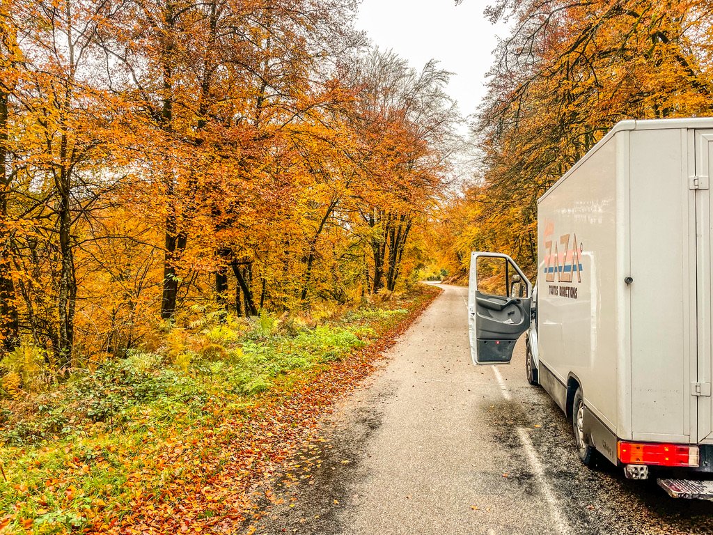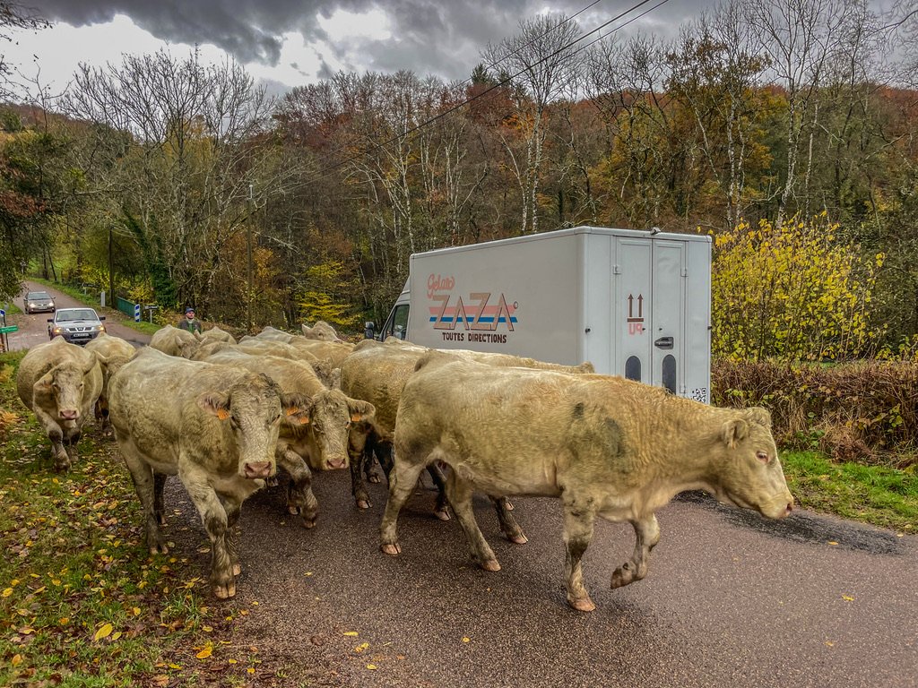 Van Parijs rijden we naar  de Morvan waar vriend Tony al jaren nestelt , het bos staat in vuur en vlam , rood/bruin/geel hangen de bladeren aan de natte bomen , de lage herfst zon doet de rest . Er wonen hier in de glooiende Morvan meer koeien dan mensen . In het verkeer zijn ze heerlijk eigenwijs en trekken zich niks van de verkeersregels aan .