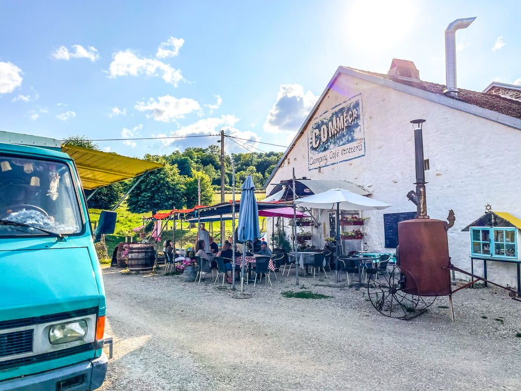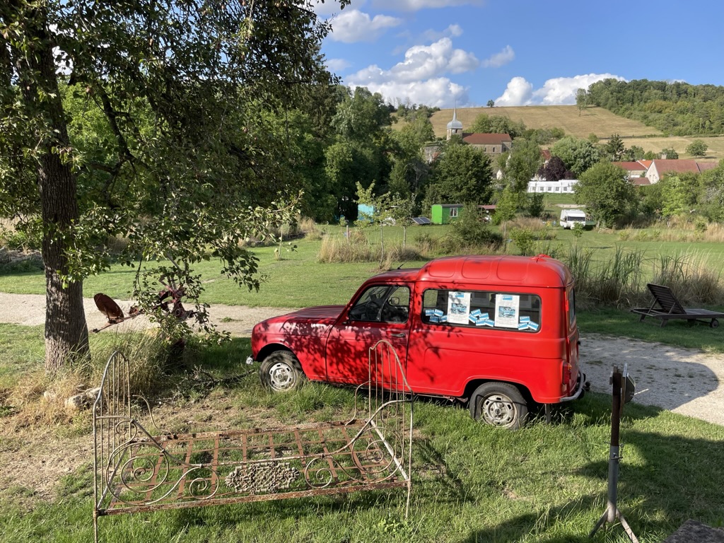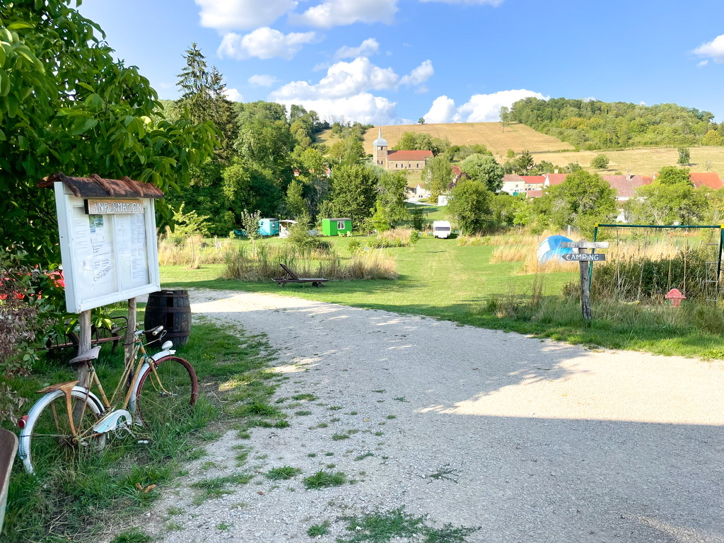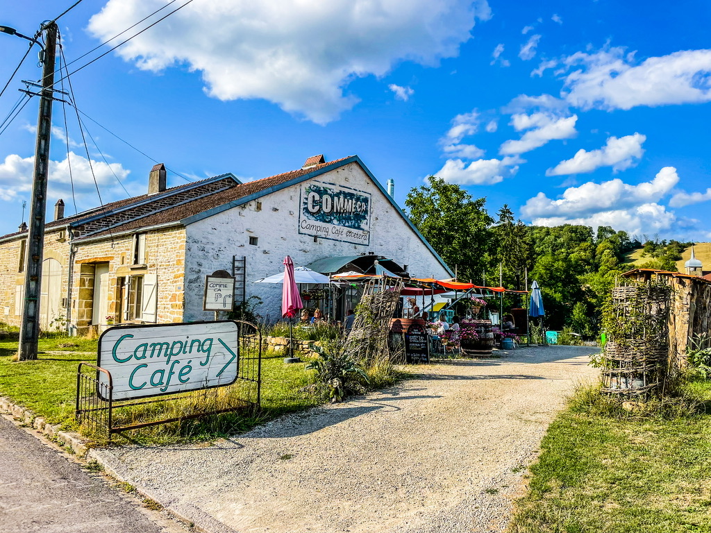 Frankrijk – Haute-Marne – Camping Comme ça in het dorpje Arbigny sous Varennes – Lekker plekkie op een fijne dag rijden van Nederland – Rob en Femmy staan je welkom op te wachten – De camping ligt achter het café / restaurant in een beeldschone vallei met uitzicht op het bos en de kerk – ’s Avonds kan je aanschuiven op het terras voor een borrel of hap – Je kan er met je camper / tent vakantie vieren of een vrolijk makende pipowagen huren.