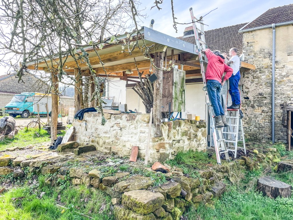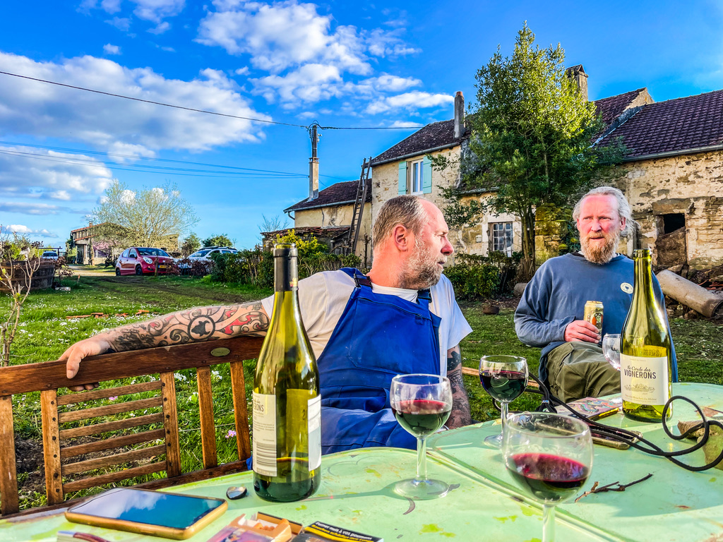 De laatste werkdag. Eerst even Rob van ‘Camping Comme รa’ helpen. Met zes handen, twee trappen, een mond vol spijkers en stoere praat is de klus voor 12:00 uur gedaan. Hij heeft daar een lekkere plek in het dal, met uitzicht op de kerk en een terras waar de glazen altijd vol zijn. Even onthouden: Camping Comme รa in Arbigny-sous-Varennes, op een fijne dag rijden van Nederland.