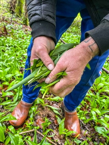 Vandaag gaan we eerst even daslook plukken voor de pasta pesto. De look is nog nat van de dauw en smaakt fantastisch op een stokbroodje met oude kaas. Ik moet uitkijken dat ik niet volkomen uit het spoor loop met lyrische verhalen over het Franse platteland op basis van een broodje zelfgeplukte look en vier dagen werk. Maar fijn is het wel. Na de pluk verloopt de terugweg traag, want bij elk huis dat te koop staat roep ik: โArrรชte!โ