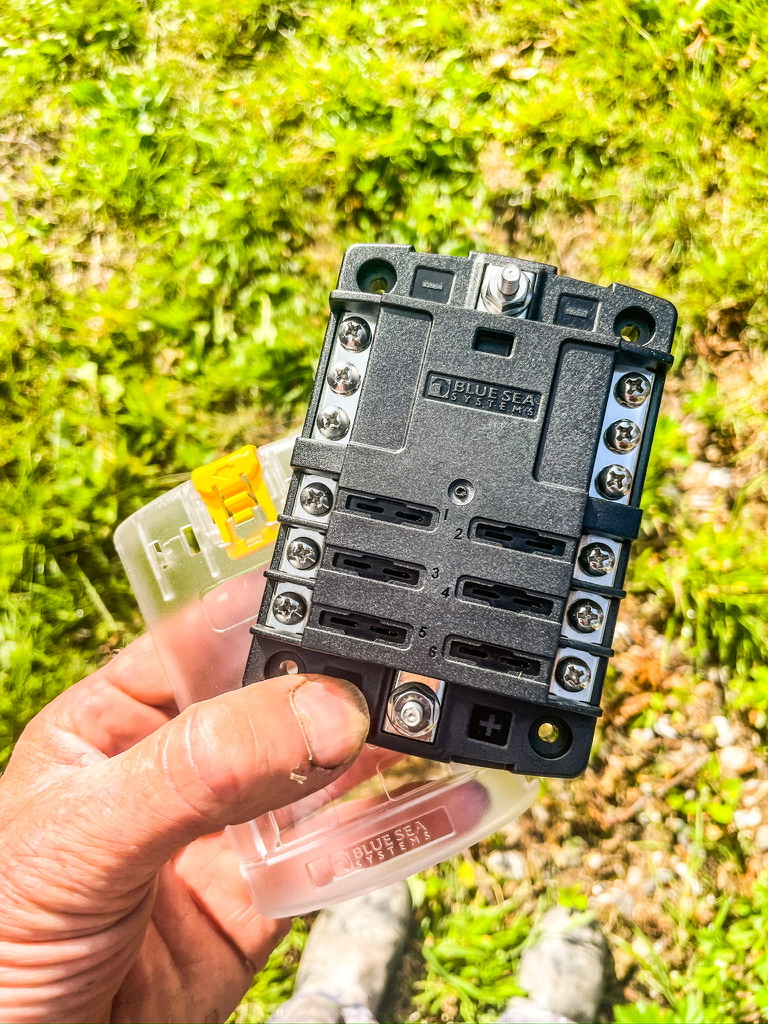 Solar Power โ De klus is zo geklaard. Het is niet ingewikkeld. Laat de zon maar schijnen! Ons systeem is van Victron: een zonnepaneel van 150×70 cm, een laadregelaar, een zekeringkastje, een accu, een flinke bos elektradraad met de juiste dikte en wat ledlampjes. Een halve dag werken met zโn tweeรซn en de zon zorgde voor koud bier.