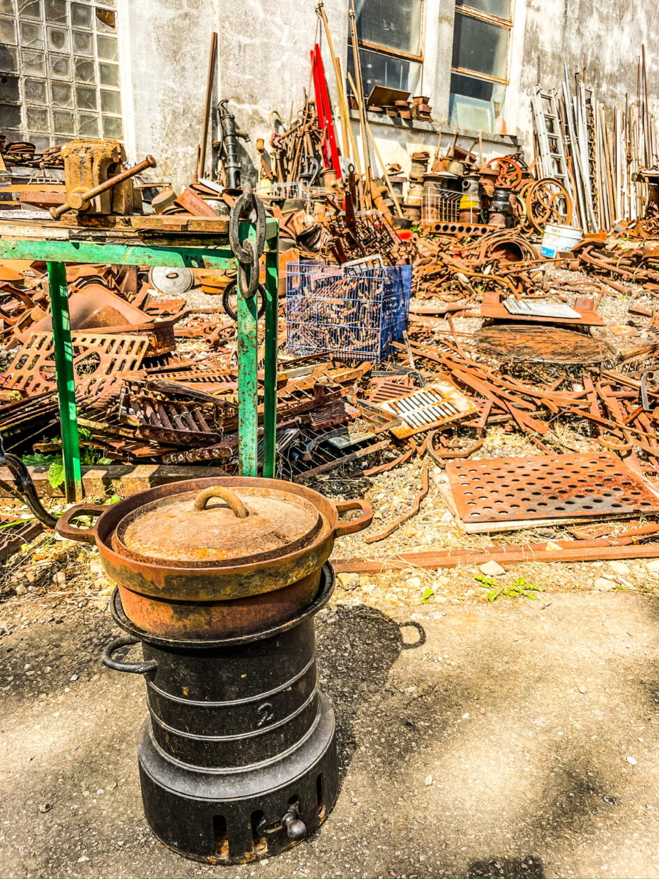 - voor een paar euro te koop bij de brocante , gietijzeren pan en een stoof