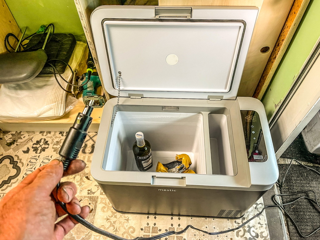 We hebben een compressorkoelbox van Mestic gekocht voor ons huis op wielen. Geestig dat de zon vanaf morgen zorg draagt voor alles wat het lekkerste smaakt als het koud is. Daarnaast kunnen we nu dagenlang op een eenzame maar prachtige bergtop staan, met nachtelijke leeslampjes die gevoed worden door de zon van overdag.