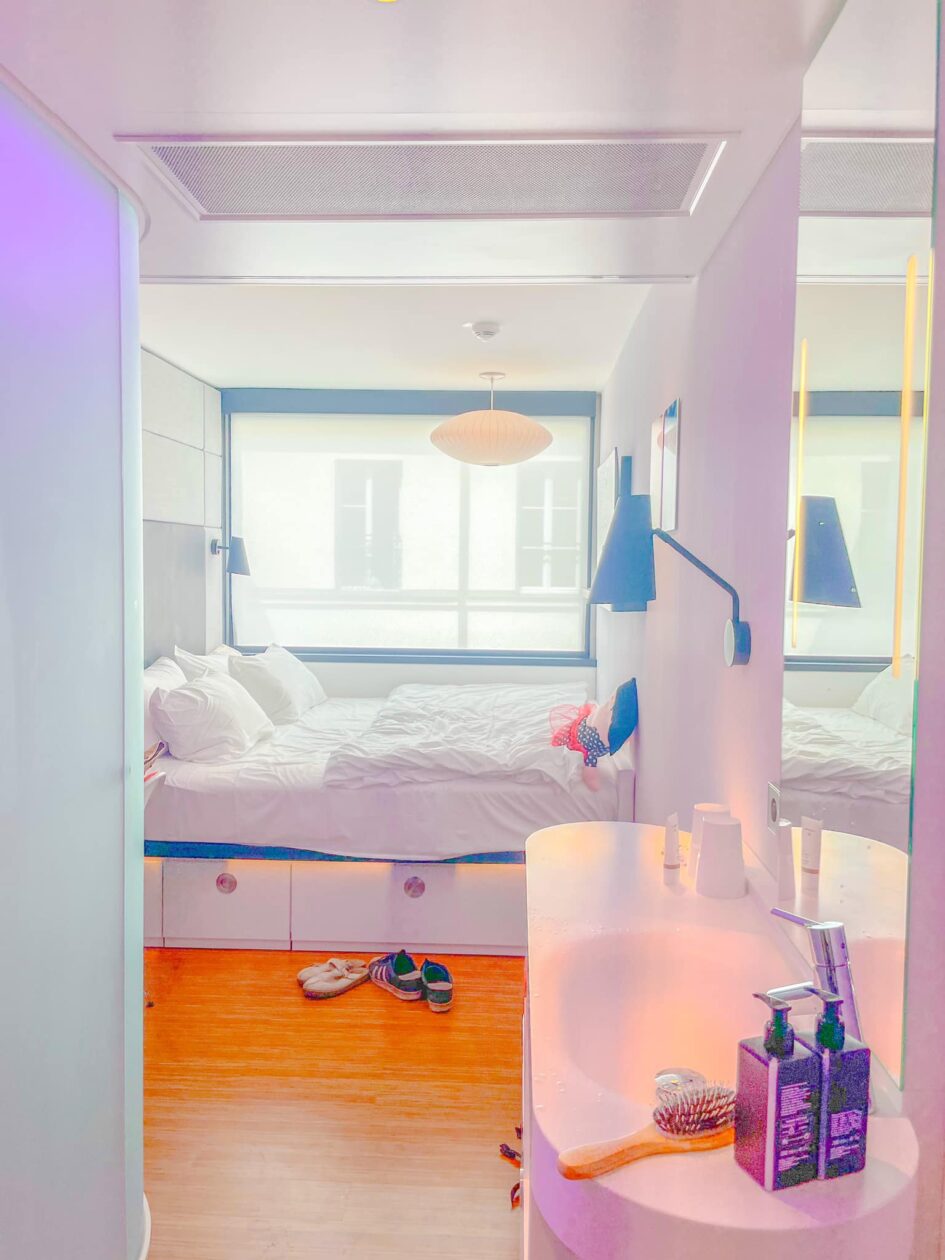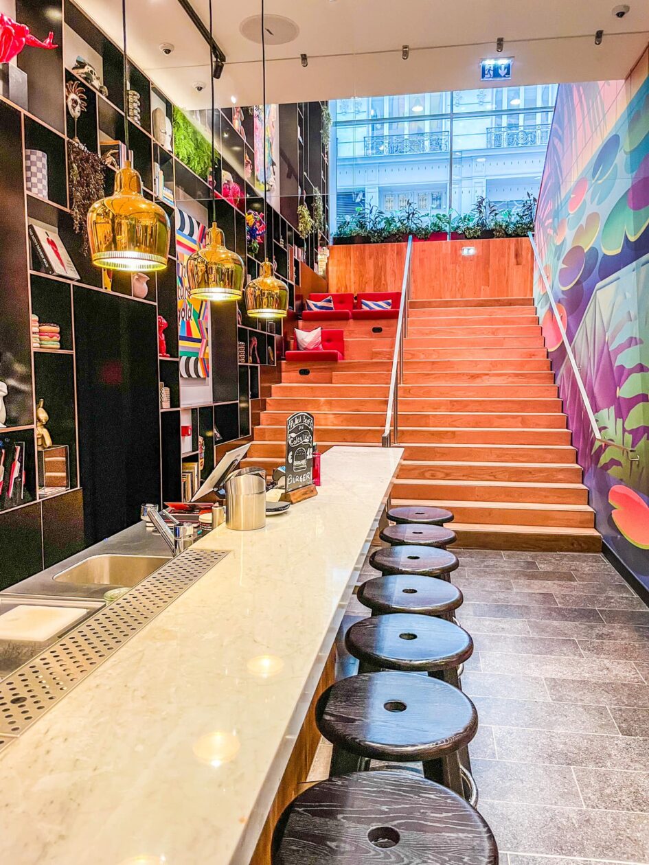 CitizenM is een lekker hip hotel met een douche als een wolkbreuk en een droom van een bed – onderweg passeerden we “Marche des Enfants Rouge “, een oude overdekte markt waar je kan aanschuiven voor een hap en een slok Parijs streetfood – ff onthouden voor de volgende keer werkoverleg –