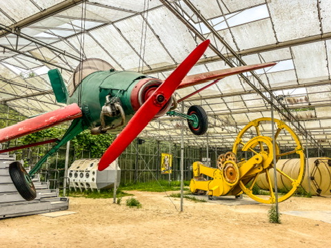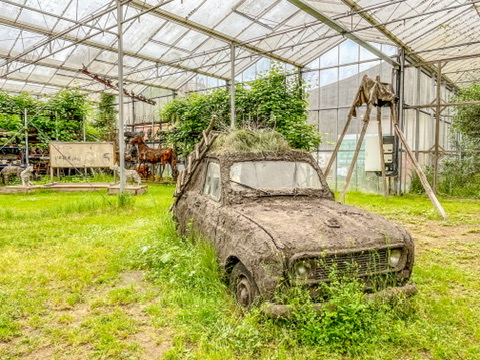 Het museum ligt pal aan de snelweg E34, vlak bij de grens tussen België en Nederland. Een deel van de collectie bevindt zich in de oude transportloodsen met daarachter 12 hectare woeste natuur, waar je fantastisch kunt verdwalen en mijmeren over de zin en onzin van de objecten die je tegenkomt. Net als de omringende natuur groeit en bloeit de collectie gestaag door. En dat is maar goed ook; het is een visueel feestje. In de enorme hallen word je ook op een lekkere manier bij de nek gegrepen door de onbedoelde kunstcollectie. Ben je na zoveel cultuur knock-out geslagen? Dan kun je bijkomen in het restaurant met een hap en een slok.