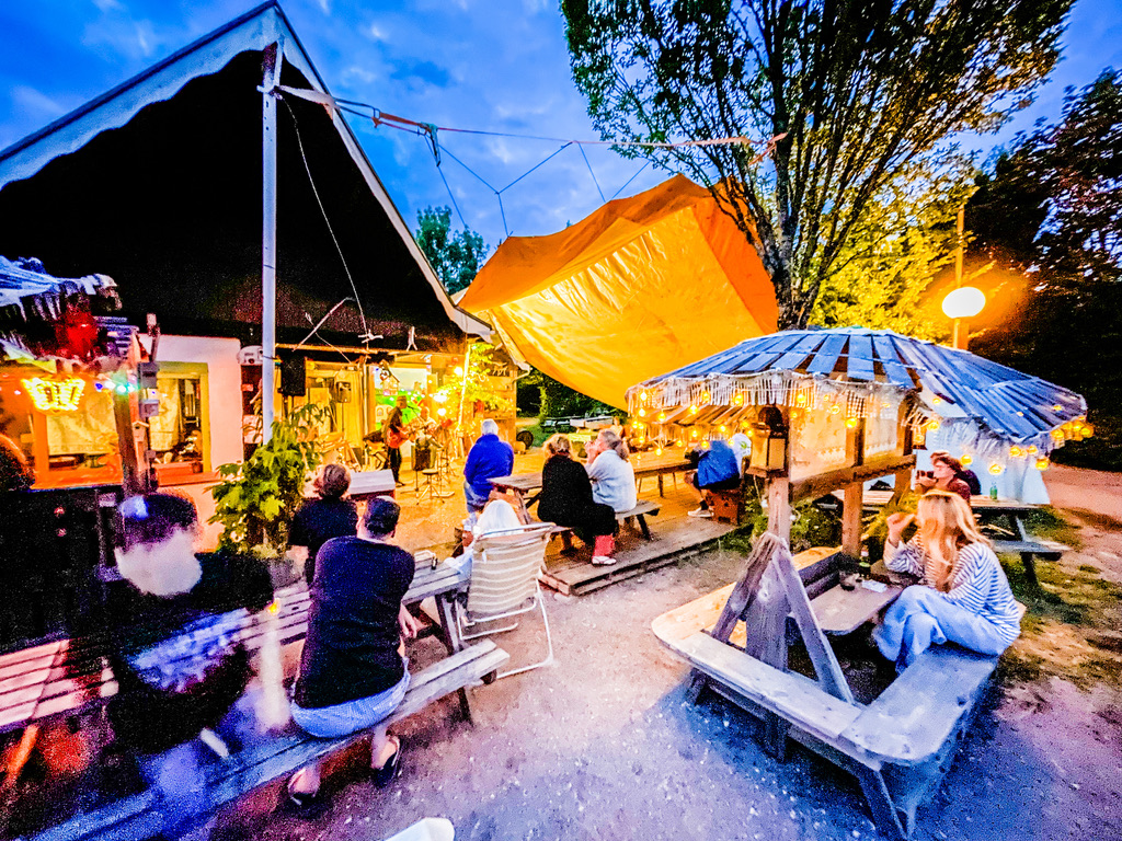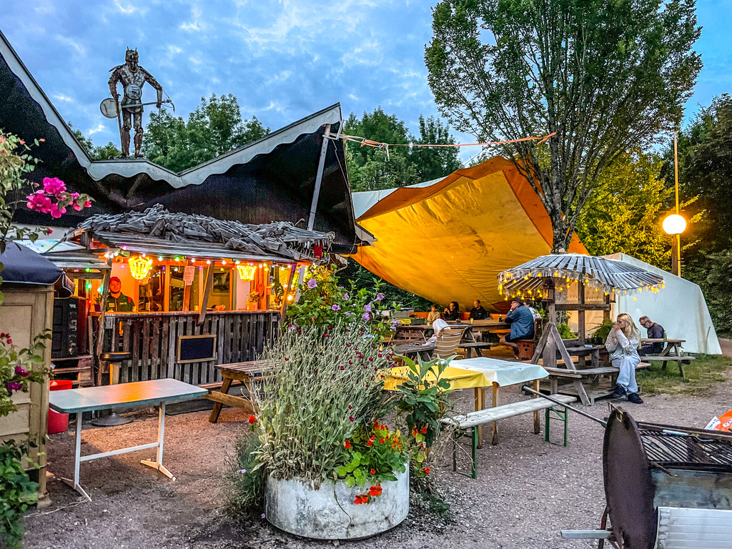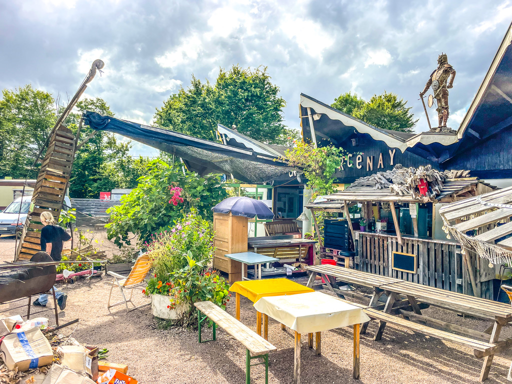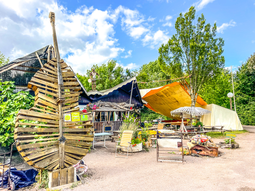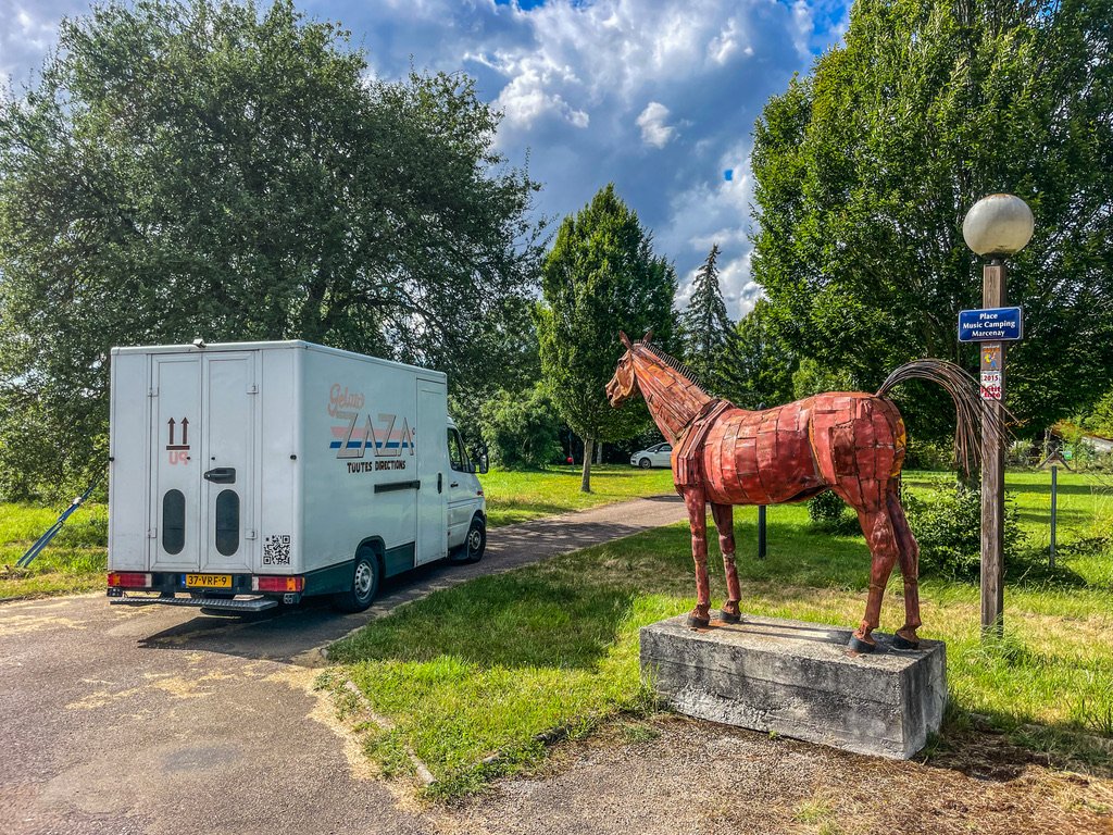 Dirk, de eigenaar van muziekcamping Les Crêtes du Lac de Marcenay, nodigde ons uit voor een nacht blues in het bos. Bij aankomst lag Dirk te pitten in de buurt van de receptie; een relaxter welkom kun je niet krijgen. Zijn oase ligt aan de Route du Crémant — ook al een goed teken, vind ik zelf — en iets boven de Morvan aan de D965. Aan het bos met open plekken en plenty schaduw ligt een fijn meertje. Voor de directe verkoeling van de oververhitte, kersverse gasten is er een zwembadje, en voor de ziel wordt er wat piano gespeeld.