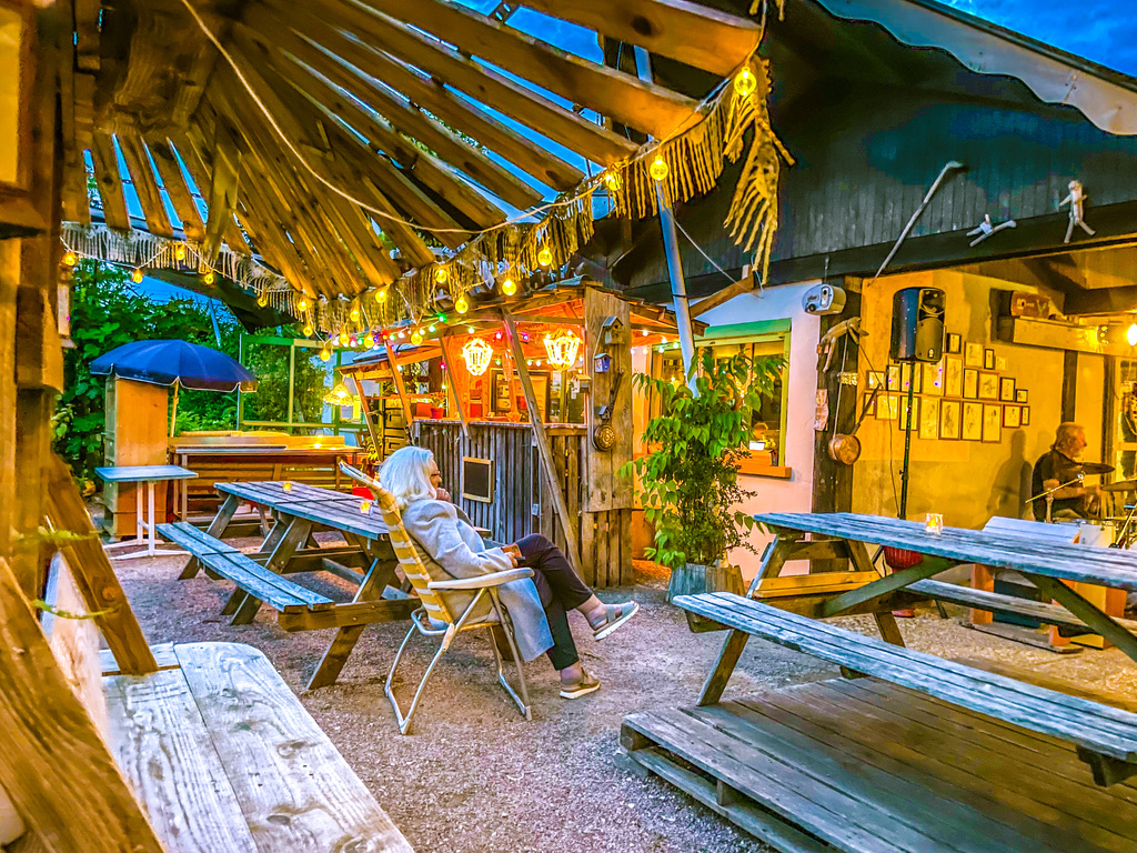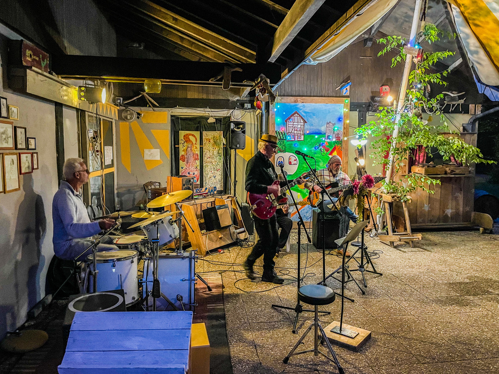 Het is nog te vroeg voor de blues. Pas als de schemer binnensluipt, begint de bas te lopen en vallen de gitaren en drums hem bij. Aan de bar is de dorst snel gelest en “Brown Eyed Girl” gaat er lekker in. Na een paar glazen wijn en een golf van akkoorden is mijn kussen de fijnste plek en daal ik binnen een seconde af naar dromenland.