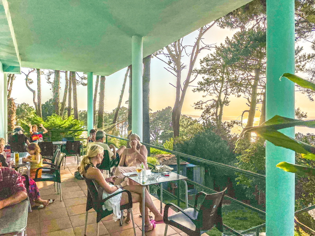 Maar ik dwaal af. Hier is alles pais en vree: een fijn zeewindje door de bomen, plenty schaduw en een heus privéstroompje voor de deur. Rond een uur of drie wordt er druk gebakken, gegeten en gedronken. De tongen komen los en het wordt gezellig Spaans rumoerig. Rond zes uur duiken we de campingbar in. Dochterlief zit te juichen aan de toog voor olympische records en wij zitten happy op het terras met een calimocho. Zondagskinderen in Spanje.