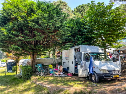 De kans op een plekje op een camping stijgt sterk als je aankomt tussen 11 en 12 uur, wanneer andere gasten vertrekken. Logisch zou je zeggen, maar logistiek en ritmisch zitten we er vaak faliekant naast. Er zijn echter momenten dat een stevige katholieke opvoeding handig van pas komt; om een opperwezen aan je zijde te hebben die gewoon even een plekje voor je ritselt in ruil voor een paar keer deemoedig en devoot bidden. Althans, ik dacht dat het zo werkte.