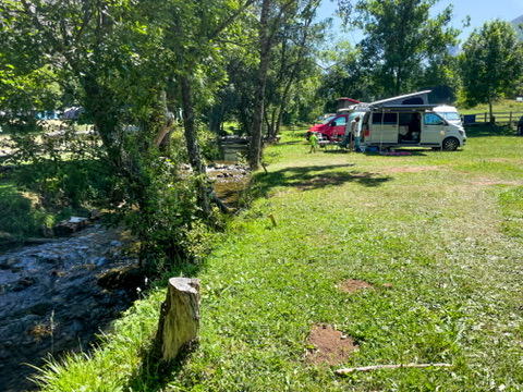 Even praktisch: Je kunt hier huisjes huren of met je camper of tent staan. Verder kun je paarden huren, een drankje doen in de bar met een simpele hap en er is een mini-supermarktje. De prijs per nacht voor de bus inclusief ons verblijf is € 25,-.