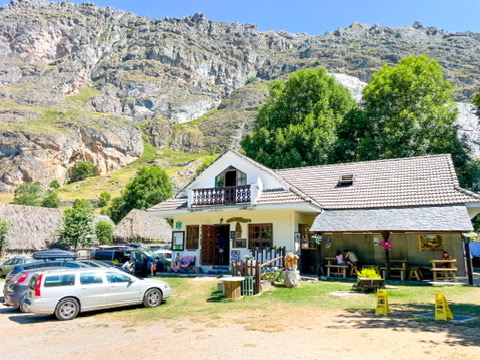 Op 1200 meter hoogte ligt een camping naar ons hart (corazón). Er werken prettige, goedlachse mensen bij de receptie en bar. We hebben een koppel paarden en een ezel als directe buren en een riviertje naast de bus dat zo koud is, dat als je er langer dan een minuut in staat, je voeten bij de enkels kunnen worden afgezaagd zonder dat je er erg in hebt.