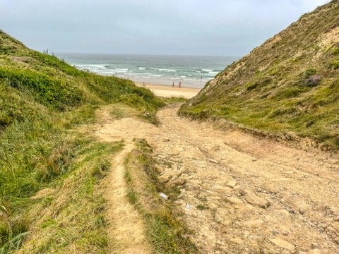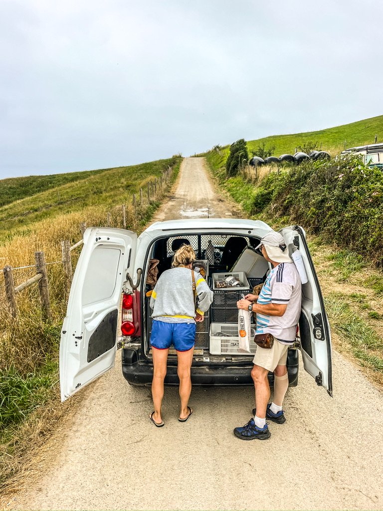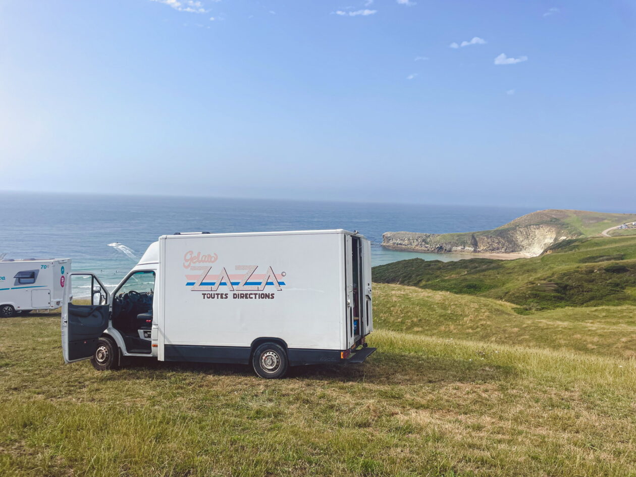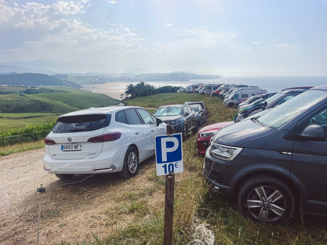 Noord-Spanje, Cantabrië – Iets buiten het dorp San Vicente de la Barquera verhuurt een boer zijn heuvel aan iedereen die hem € 10,- per nacht per camper betaalt. We staan eersteklas. De heuvels glooien precies op een prettige manier naar zee; zwart-witte koeien steken scherp af tegen de fletsblauwe lucht als op een fijn schilderijtje. Paarse bloemetjes vallen op in het groene geweld van gras en klaver. Het is heiig en je proeft het zout van de golven die kapotslaan op de rotsen.