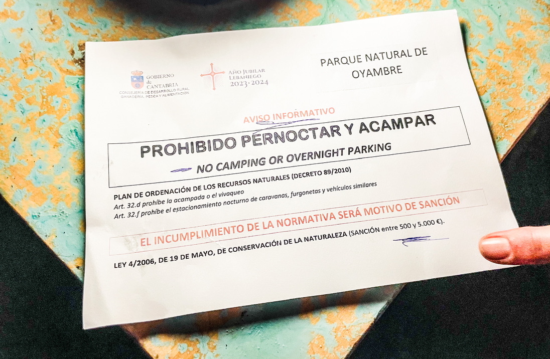 We waren gewaarschuwd: je mag hier niet overnachten, op straffe van boetes van € 500,- tot € 5000,- per overtreding. Kort verhaal lang: om 23:00 uur kwam ik (kwamen we) dan toch nog in conflict met de Policía Nacional. Hoewel, conflict is een groot woord; afgezien van de dreigende zwaailichten in de nacht en het noteren van onze kentekens waren ze uitermate vriendelijk en voorkomend. De boodschap stond ons alleen op dat tijdstip niet aan: oprotten.