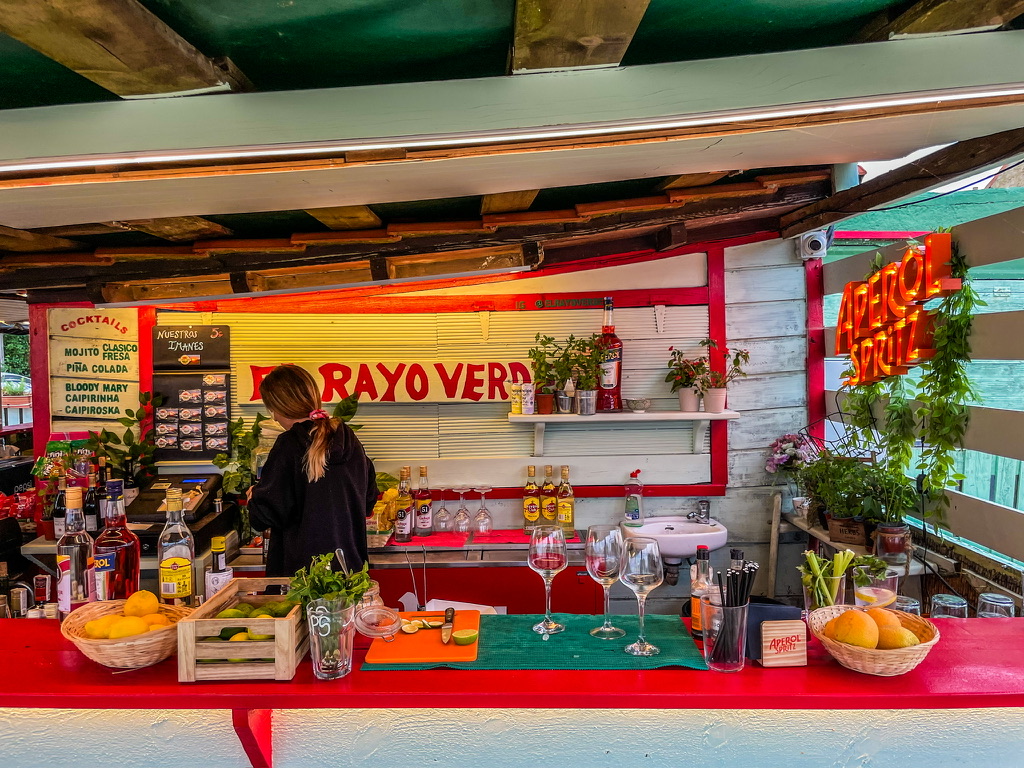 Aan het einde van de dag verzamelen de surfers, camperzwervers, wandelgekkies en andere professionele wegwezers zich op de heuvel buiten café “El Rayo Verde”. Het is een grasheuvel met uitzicht op de oceaan en, met een beetje mazzel, het spektakel van de zon die wegzakt in zee. Een paar barren en keukens voor een hap en een slok; meer is het niet, maar het is ruim voldoende.