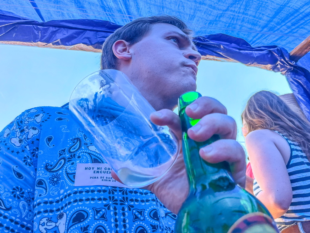 Zo bleek: voorafgaand aan de eerste zondag van augustus wordt er een week lang getimmerd en gezaagd โ€“ vermoedelijk met een druppie cider tegen de dorst โ€“ door dorpen, vriendengroepen en families aan hun eigen hut of kroeg op het festivalterrein. Elke hut heeft een naam: De Kippen, De Gehangene, Los Chambones… om er maar een paar op te noemen. De leden lopen trots rond in T-shirts met de naam van hun hut erop, gewapend met een fles cider. Uiteraard is er een prijs voor de mooiste en origineelste hut, en is er ook nog eens de Miss en Mr. Xiringรผelu-verkiezing. Waterpistolen zijn hier ook een ding, dus je loopt vaak in een hinderlaag. Wat dat verder met cider te maken heeft blijft vaag, maar leuk is het wel. Who cares.