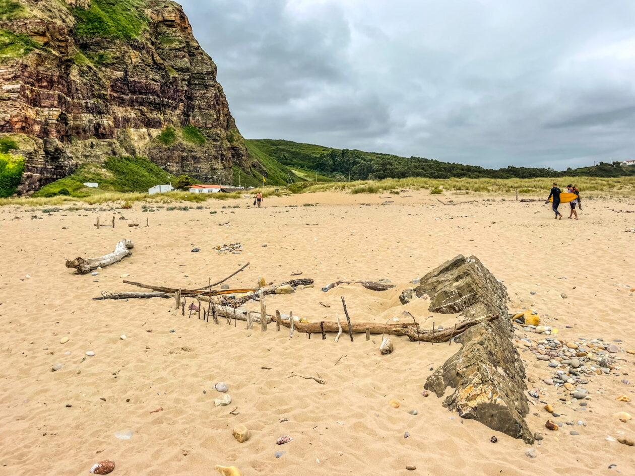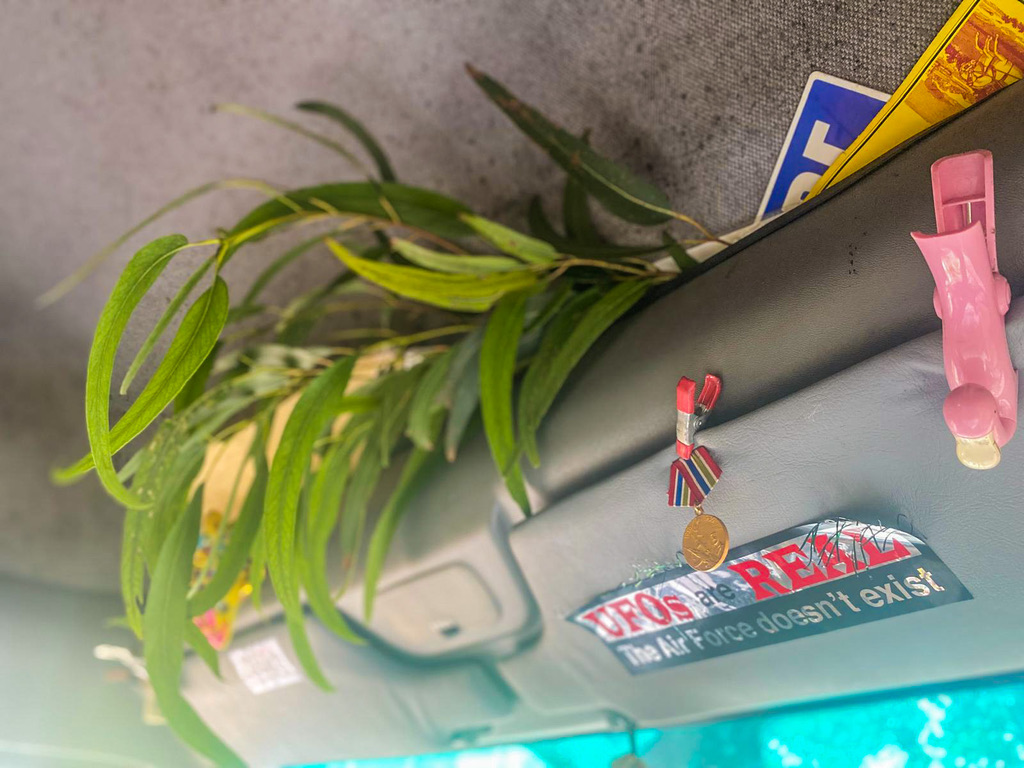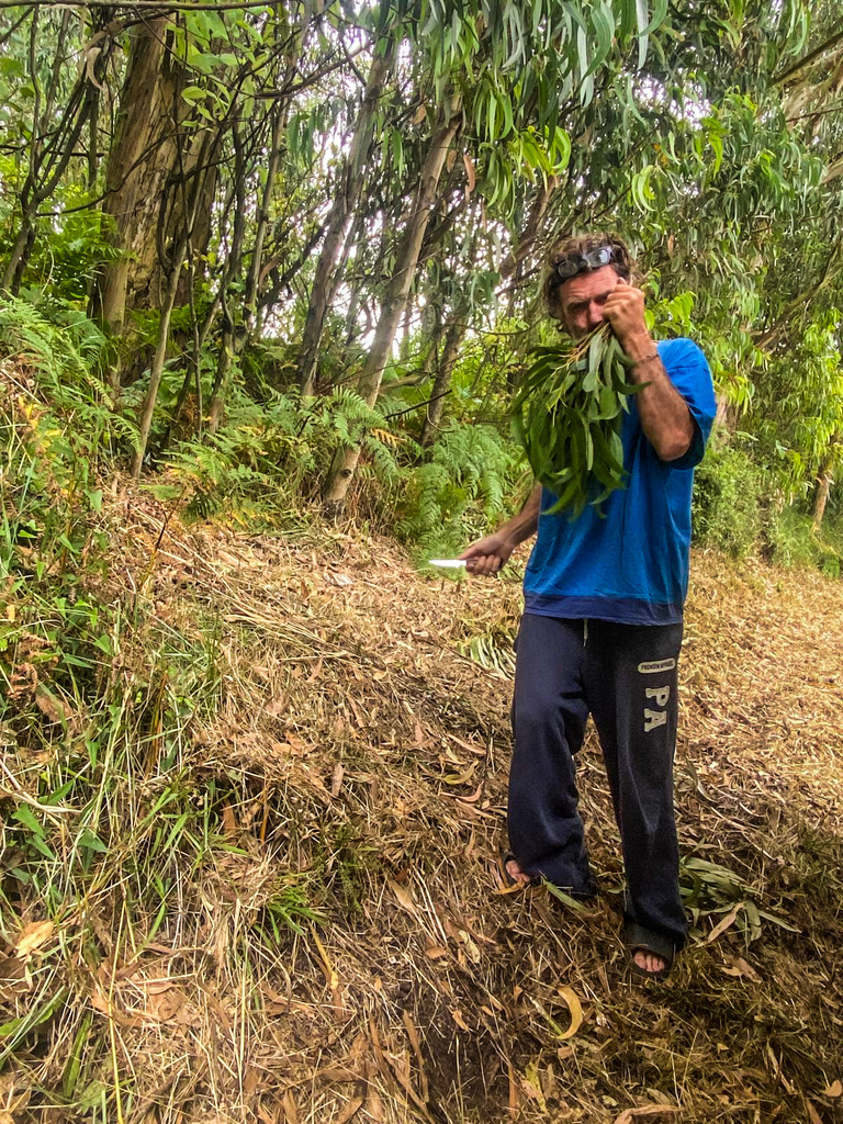 Verwar de verse geur van eucalyptus niet met datgene wat je kent van de wc van je oma of die gekke autokerstboompjes die je aan binnenspiegels ziet hangen. We rijden nu langs eucalyptusbossen waar de zeewind zacht doorheen strijkt. Man, wat een heerlijke staat van verrukking brengt dat! Even stoppen om de autokerstboom bij het grofvuil te mieteren en wat bladeren van een boom te “lenen”. Haal ze onder je oksels door en hang de rest in de cabine.