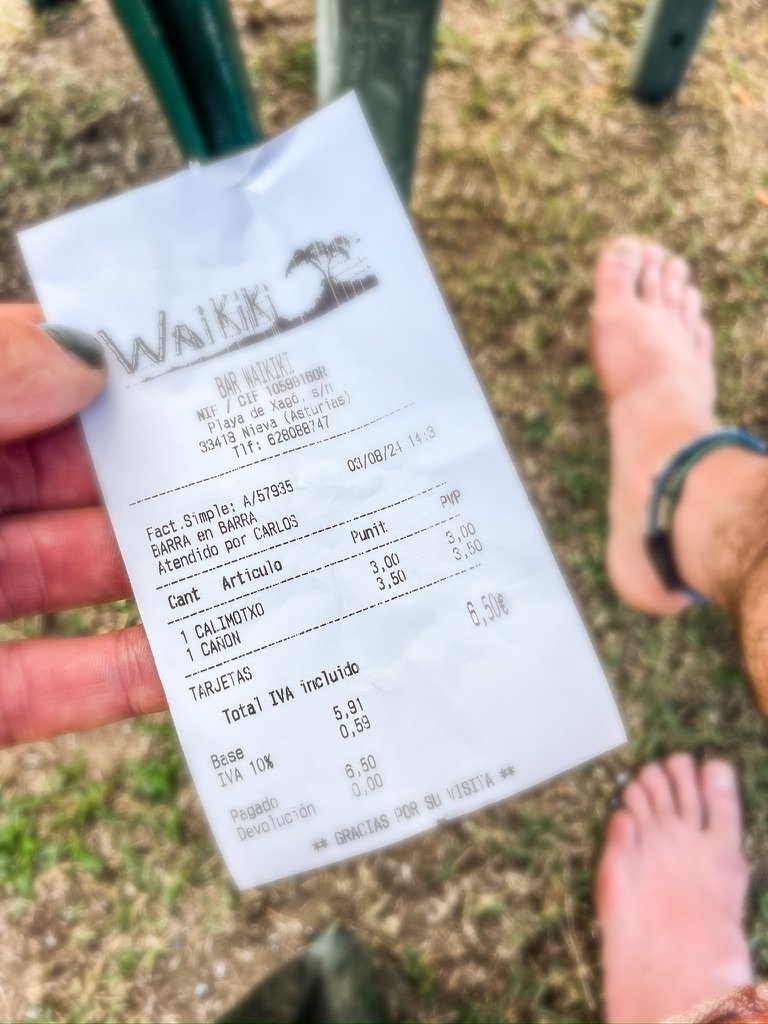 Chiringuito is een fijn woord om op je mond te proeven. Het staat voor strandbar; de locatie en wat je er kunt bestellen staat dus min of meer vast. In Frankrijk word je vermoedelijk geboeid en subiet de grens overgezet als je Calimocho bestelt, en dan kom je er nog goed vanaf. Maar hier aan Playa de Xagรณ, bij Bar Waikiki, wordt het zonder duistere blikken gul voor je gemixt. Wat het is? Rode wijn, cola en een handvol ijsblokjes. In Belgiรซ kun je Mazout bestellen (bier met cola), hoewel dat voor de puriteinen onder ons vermoedelijk wat minder beladen is dan de variant met wijn. Ik vind het een fijne zomerse slok. Ober, schenk nog eens bij!