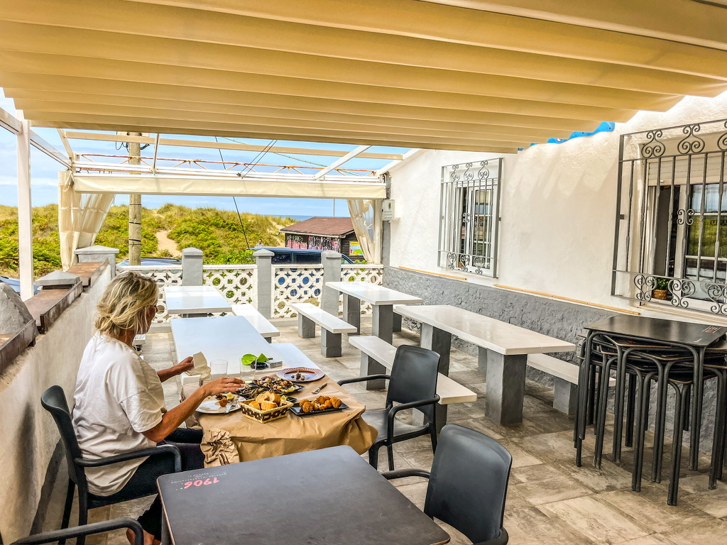 Wat moet je zonder ToffeTips? Dit plekkie kregen we in onze schoot geworpen door Dave van @ToffeCamper uit Amersfoort (die kun je trouwens ook volgen op Instagram; hij is momenteel ook aan de zwerf door Noord-Spanje). Honger en dorst vallen heel goed te temmen bij Bar Miramar, direct aan het strand, met een hoog “alleen op de wereld”-gevoel. Er staan fijne mensen achter de toog, waarbij ons gebrek aan Spaans geen rol speelt.