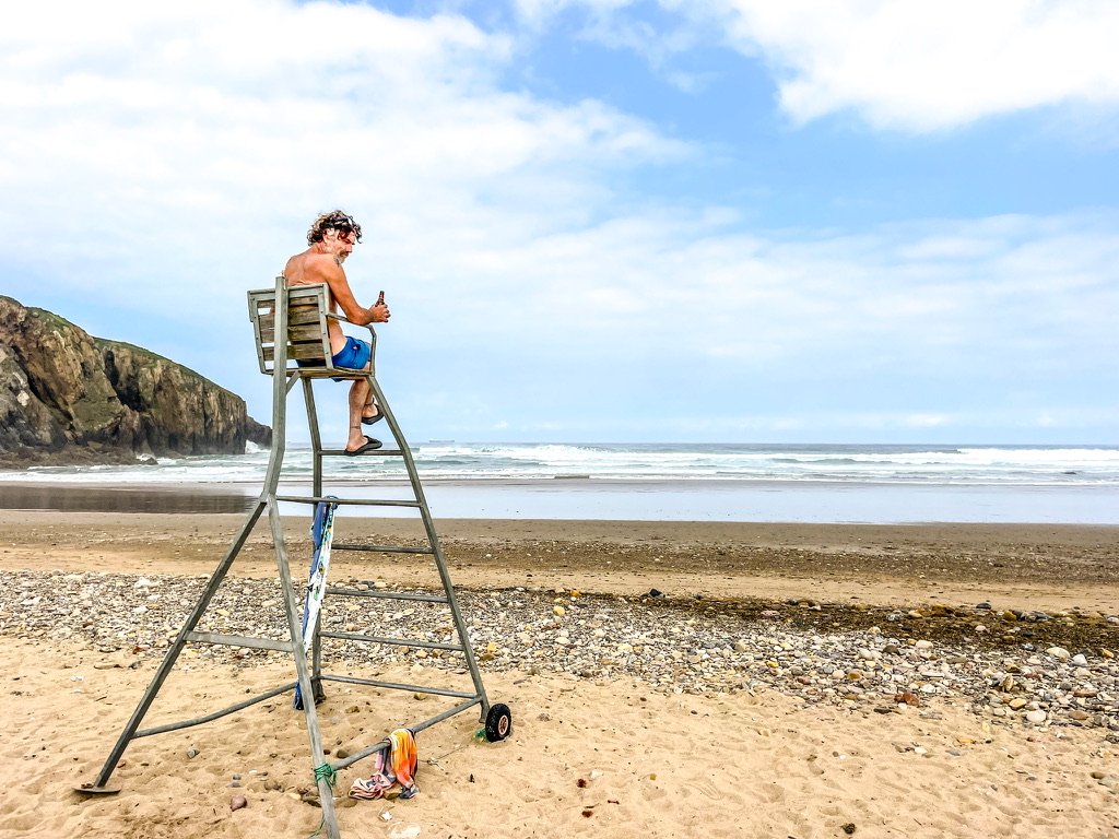 Verwar de verse geur van eucalyptus niet met datgene wat je kent van de wc van je oma of die gekke autokerstboompjes die je aan binnenspiegels ziet hangen. We rijden nu langs eucalyptusbossen waar de zeewind zacht doorheen strijkt. Man, wat een heerlijke staat van verrukking brengt dat! Even stoppen om de autokerstboom bij het grofvuil te mieteren en wat bladeren van een boom te “lenen”. Haal ze onder je oksels door en hang de rest in de cabine.