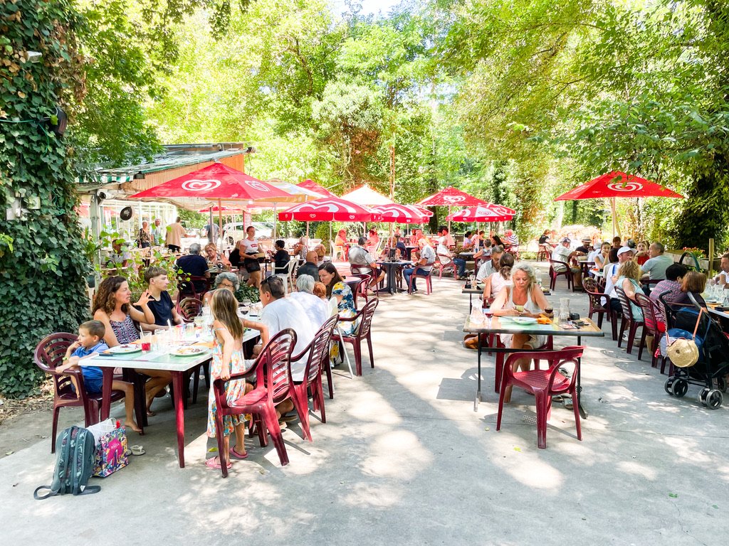Maar wat betekent Guinguette dan wel : tijdelijk zomer restaurant aan de rand van een meer of rivier – et voila – deze Guinguette ligt aan de rand van Saint Denis en aan de Cèze – voor Nederlanders die op vakantie een allergie hebben voor andere Nederlanders op vakantie – wees gerust , eten / zwemen/ overnachten hier is een Frans Feestje.