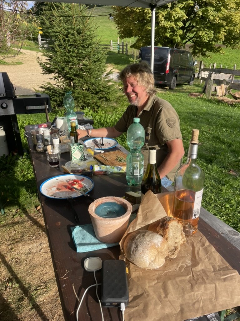 Ik snap het. Wij douchten dus uitbundig, en fris en vrij maakten we een fikkie en aten daarna compleet yin en yang, in lotushouding, de steak op.