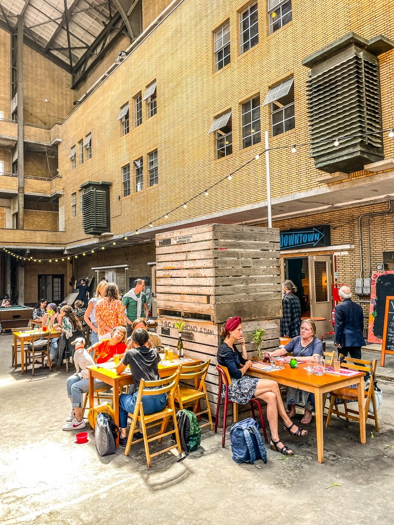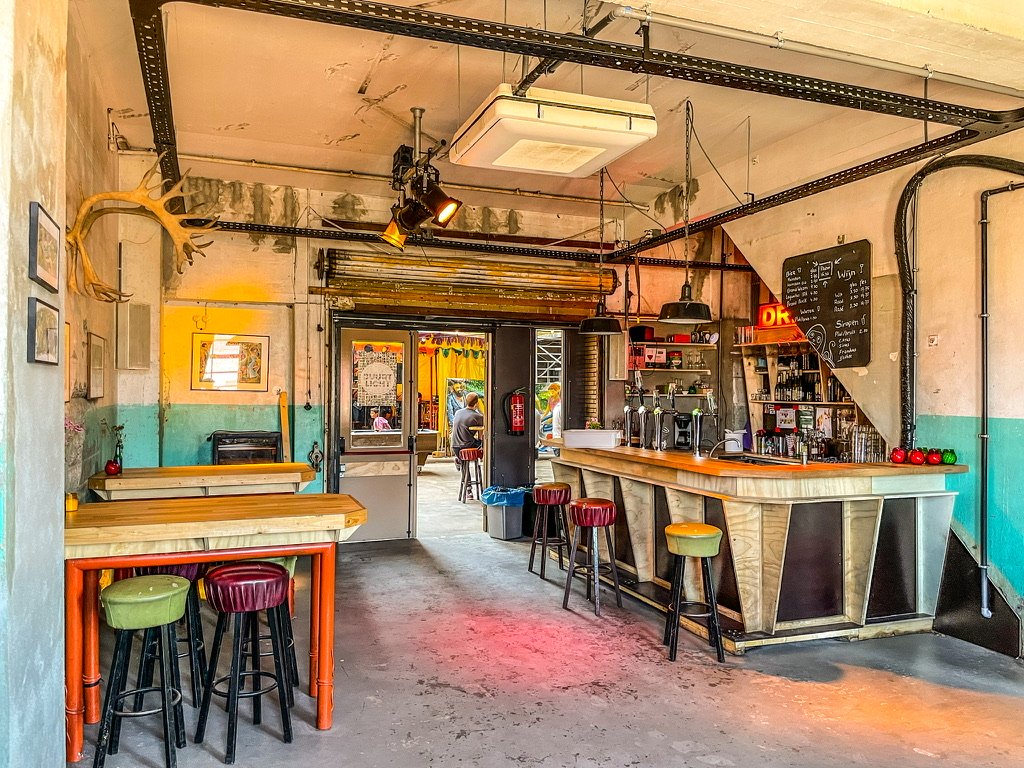 Amsterdam – zondags lunch bij Markt Centraal in de voormalige centrale markthal op het Food Centre Amsterdam – Voor het hek word je opgepikt door de  Markt Centraal Express die je slingerend over het terrein langs een enorme muurschildering van  Keith Haring naar de centrale markthal brengt – hoe is de sfeer ? Portie stevige live muziek als voorafje  / lieve bediening / lekker eten / top plek ! Even noteren : marktcentraal