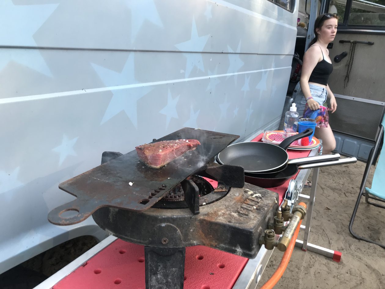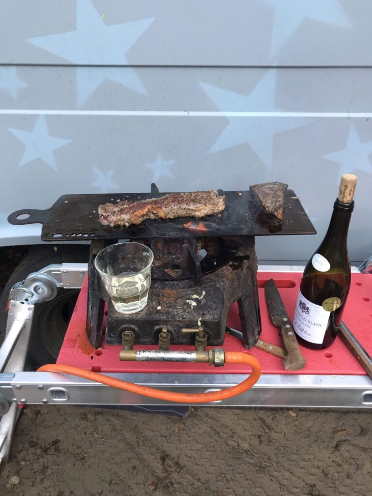 Dit is super handig – een vouwladder / buitenkeuken – die gasbrander is fantastisch – later heb ik een twee pits gekocht – kan je toch iets uitgebreider koken .